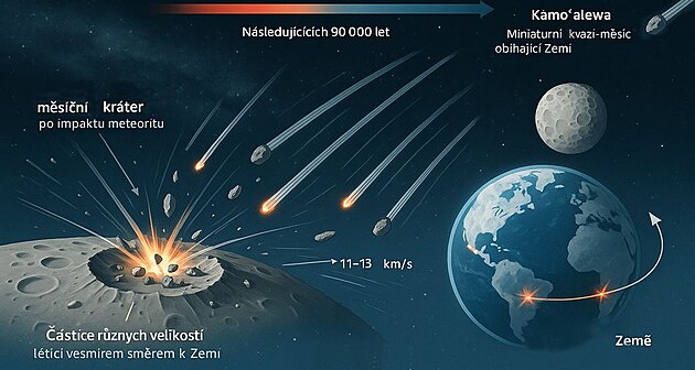 Dopady asteroidů na planetární tělesa jsou malé vesmírné katastrofy. Po impaktu - srážky s asteroidem - se do vesmíru vymrští větší nebo menší část hmoty, která tvořila původní planetu nebo měsíc. Tato hmota se pak vydá na různé dráhy a může se následně srazit s naší vlastní planetou. Vědci se snažili v počítačových simulacích zjistit, jak časté jsou případy, kdy se měsíční hornina dostane přímo na Zemi - a jak dlouho jí to trvá.