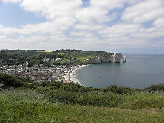 ÉTRETAT je kouzelná francouzská obec na pobřeží Lamanšského průlivu s proslulými Alabastrovými útesy a největšími přírodními skalními oblouky na obou koncích podkovovité pláže, které byly inspirací děl mnoha malířů (samozřejmě včetně Moneta).