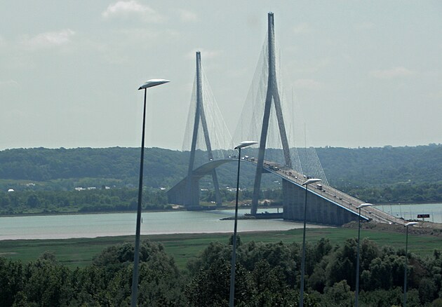 Ten větší a významnější při ústí řeky Seiny se jmenuje PONT DE NORMANDIE. Spojuje město Honfleur s protějším přístavem Le Havre. Je zavěšený na mohutných lanech a měří 2143 metrů. Stavba mostu trvala 7 let. Slavnostně byl uveden do provozu v lednu 1995. Tehdy se jednalo o nejdelší zavěšený most na světě.