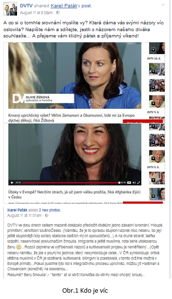 Nicméně ihned následující den po obou rozhovorech (11. 8. 2016) byl uveden příspěvek od pana Karla Patáka, jak jsem uvedl na začátku, viz Obr. 1 Kdo je víc.