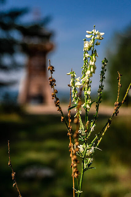 Vychutnali sme si obe krásne vyhliadkové miesta, ale nezostávalo nič iné, ako sa vybrať ďalej. Stále lesíkom a stále po žltej značke. Po chvíľke nás čakalo dlhé a strmé stúpanie, ale nič náročné. A potom to prišlo. Zbadali sme náš hlavný cieľ našej turistiky a to rozhľadňa Háj.Rozhľadňa Háj ponúka krásne výhľady na celé mestečko Nová Baňa a okolité kopanice - lazy - banské dedinky. Viem si predstaviť, že s tejto rozhľadni musí byť krásny východ ale aj západ slnka. Je to miesto, ktoré sa oplatí navštíviť. Po ceste hore stretne aj veľa jašteríc :) .