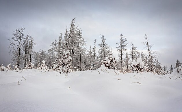 Pohľad na tohto ročnú Veľkú Javorinu v zime. Bohužiaľ snehu bolo málo a pekného počasia ešte menej. Som rád, že som stihol aspoň jeden krát tam zažiť ako takú zimu.