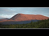 Kebnetjakko(1191m.o.h.) v nízkém, půlnočním slunci připomíná australský Uluru(Ayers Rock). Je to podstatně blíže, ale pořád pěkná štreka....
