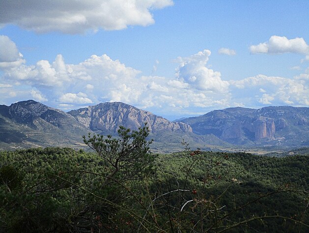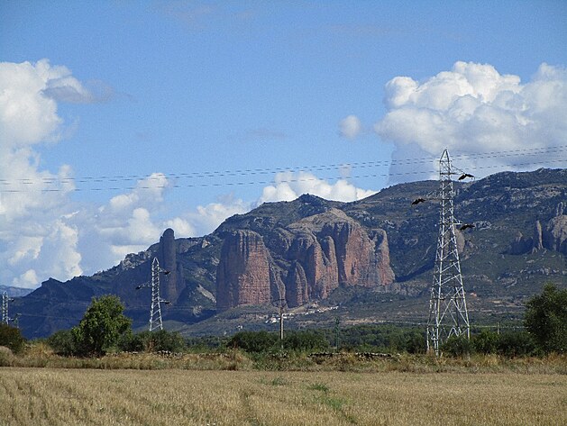 Skály Mallos de Riglos, které Oskar opěvoval jako největší atrakci okolí Huescy, orámované civilizací..