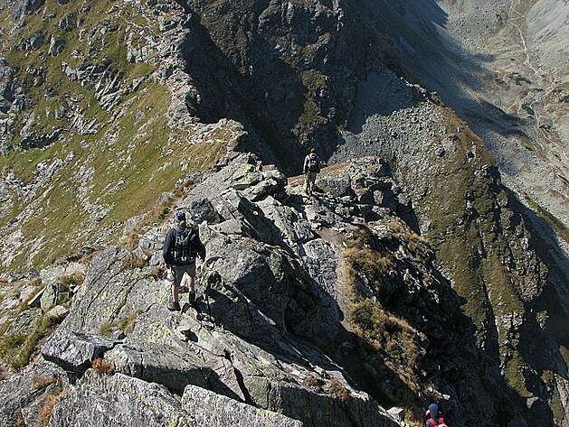 Uvěřila jsem mu a vyrazili jsme z chaty Zvierovka. Po celou cestu mě neustále uklidňoval, že to je brnkačka. A pak jsme došli k prvnímu vodorovnému řetězu. Žádný chodníček tam nebyl, jenom skála, na ní přikovaný řetěz a pod ním uzoučký výstupek, na který se dalo jakž takž stoupnout. A dolů ani nevím jaká hloubka, protože jsem se tam radši ani nedívala.
