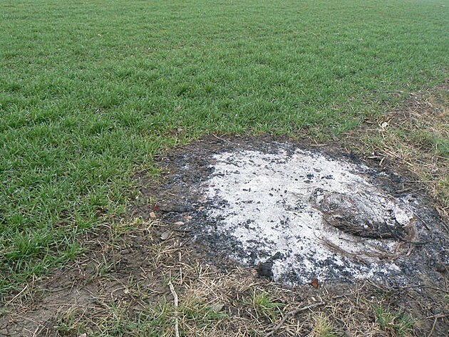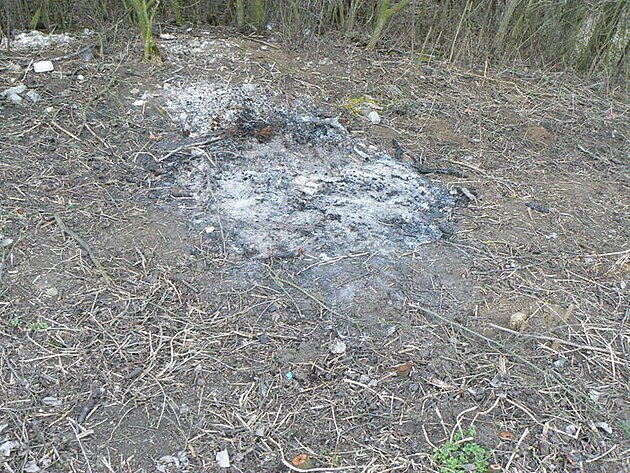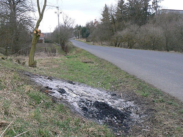Takto je zasažen pás silnice dlouhý asi jeden kilometr po obou stranách vozovky. Počet ohnisek se spáleništi je celkem 24, pokud jsem je všechna správně spočítal. Je evidentní, že se zde pálily čerstvé větve, a že oheň byl podporován pneumatikami, dělo se tak v těsném sousedství polí a obce. Pracovníci, kteří zde pracovali, museli být vystaveni obrovskému znečištění toxickýcmi splodinami...