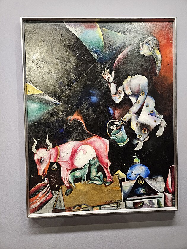 Marc Chagall (1887–1985), který se narodil do ortodoxní chasidské židovské rodiny a vyrůstal v běloruském Vitebsku, patří k nejznámějším umělcům 20. století. Výstava se soustřeďuje právě na jeho rané dílo z let 1908 až 1922, které vzniklo převážně za jeho pobytu v Rusku a kde se vytvářela jeho známá poetika. Vystaven je i jeho nejstarší obraz Posvícení z roku 1908, který je následován všemi dalšími létajícími milenci, hudebníky, oslíky, prostě tím, pro co ho milujeme.