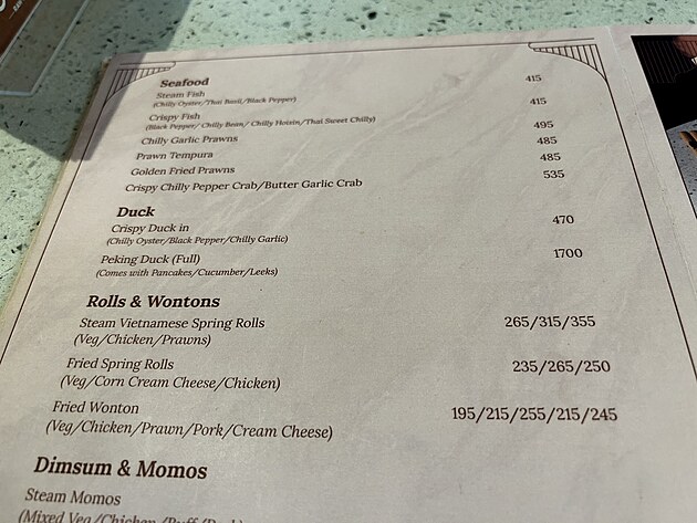 To, že jídlo bylo naprosto skvělé, vám snad nemusím povídat. Pokud vás to zajímá, kousky kachny byly v chili ústřicové omáčce, s černým pepřem a česnekovým chili, za 470 rupií.