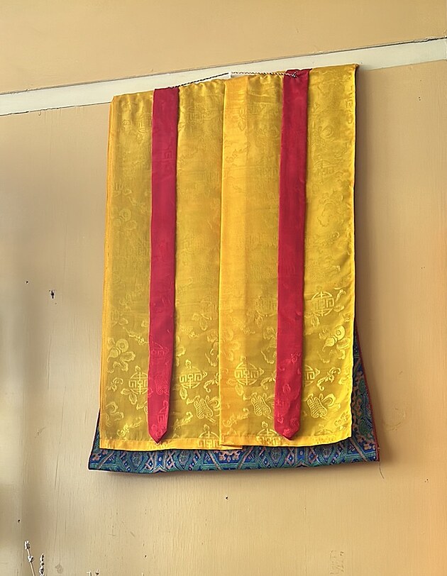 Mít určitý "obraz" konkrétního Buddhy na textili jsem si přál už dlouho. V prodejně jsem pak nakupoval s prodavačem, který za mnou přišel ze sousedního minikiosku. V něm ale, jak se ukázalo později, pouze zaskakoval. Prodával právě ty závěsné textilní obrazy.