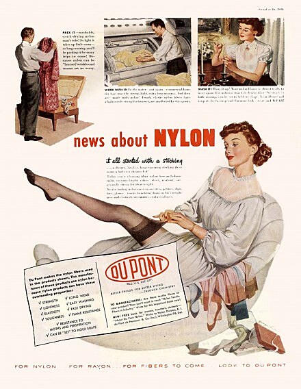Nyní jistě udělám radost především ženám. A sice, že 24. října uplynulo 74 let od uvedení na trh - vážené dámy - ano, nylonek! Firma Dupont ve 30. letech hledala nové cesty v průmyslové chemii a v r. 1934 nylon "vymyslel" dr. Wallace Hume Carroters. Prvotně se z nylonu vyráběly štětiny pro zubní kartáčky a podobné. Ale postupným zdokonalováním a výzkumem došlo k výrobě punčochových nylonek, které se staly převratným základem dámského šatníku. V americkém měste Willmington, státu Delaware, se prvních 4000 párů vyprodalo během tří hodin. Tvůrce nylonu se bohužel úspěchu nylonek nedožil - odešel z tohoto světa o rok dříve, dobrovolně, v důsledku depresí, že se mu dílo nedaří... I to patří k paradoxům osudů velkých vynálezů.