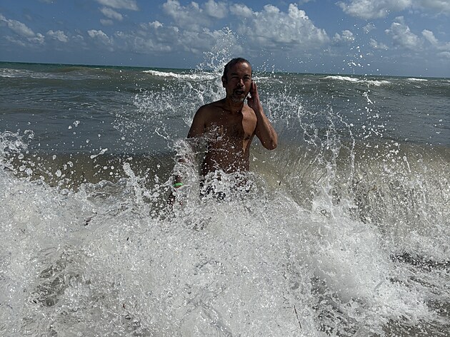 Jistě si říkáte v duchu, jak jsme si to u moře užívali. Inu, užívali, až na dva dny, kdy byly opravdu velké vlny a do moře se odvážili jen ti otrlí. Druhý den už to bylo sice lepší, jak vidíte z druhého foto... ale já jsem to odnesl doslova modřinou, jako kdybych dostal do těla ránu pěstí (foto vám raději neukážu.)