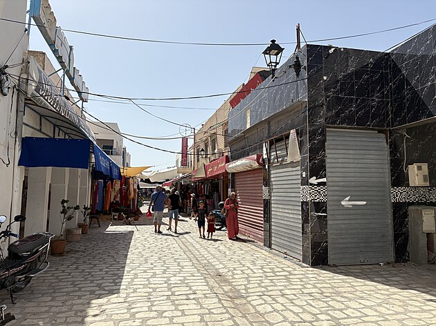 Podnikli jsme i pár drobných, spíše nákupních výletů do města. Povinné fakultativní výlety jsme si odbyli již minule a stačilo. Samozřejmě s místními průvodci skončíte v nákupní čtvrti... My jsme to nyní bez nich vzali „rovnou“, bez toho aniž bychom se před tím v rámci takového výletu trmáceli k antickému mostu spojujícímu ostrov Djerba s pevninou. A vyhnuli jsme se i povinným návštěvám místních keramických a jiných dílen.