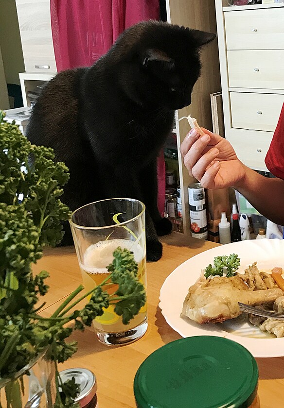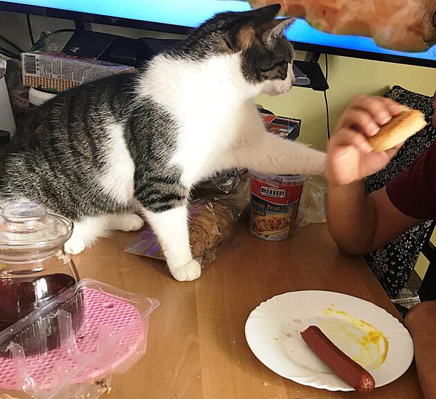 Zde si zapamatujte, že kočičí krmivo, zejména od známých značek, je především pouhým "příkrmem." Řádné krmivo představuje především kus masa z vašeho prkna i talíře, párek, sýr, šunka, sendvič, buchta a vůbec všechno, co kočkám voní.