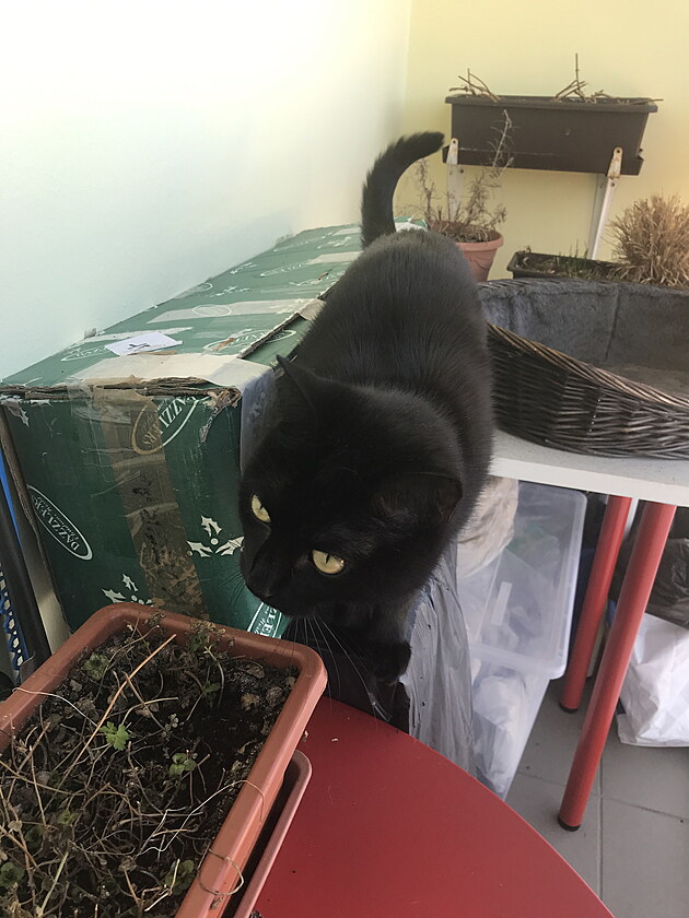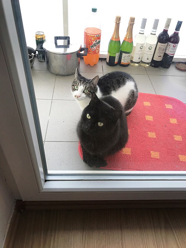 Číhá se na myš, na ptáky... samozřemě na to, kdo přijde domů a co postatného přinese - kočkám. Odhadnou to hravě i přes trojobal: taška, sáček, balení do fólie. A to i přes zavřené dveře balkónu, prosím!