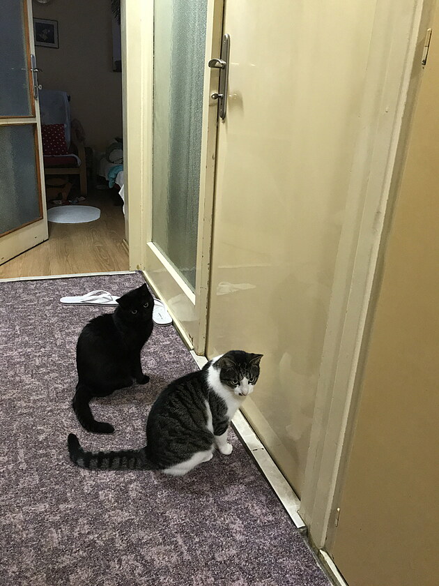 Není totiž nic žalostnějšho než čekání těch dvou před vaším pokojem. Čekáte-li pak dostatečně dlouho, ne kočky, ale vy, tak se začne ozývat zoufalý zesilující se řev smrtelně vyhladovělých kočiček, což probudi i toho největšího spáče.