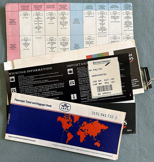 A tak jsem za strženou cenu koupil letenku Frankfurt n. M. - Washington a zpět. Přes Londýn. A letenka to byla fixní: nedala se vrátit, nedala se vyměnit - mohla se pouze proletět, jinak propadly peníze.