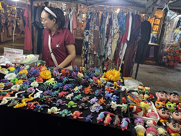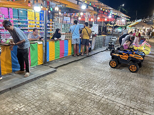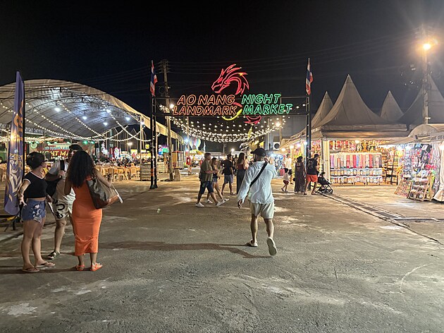 Poté jsme se prodrali kolem barvitých stánků s lacinými suvenýry a cetkami až na parkoviště. Tady nás po dohodě naše řidička naložila a plni dojmů a nákupů jsme se vraceli. A ačkoliv jsem se snažil zachytit tu atmosféru večerního městečka Ao Nang, mobil odmítl spolupráci.