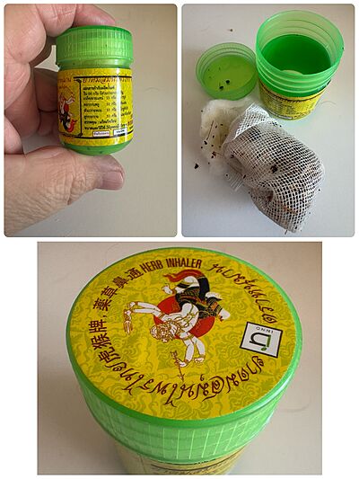 Přítele zajímalo hlavně sušené (kandované) mango a jiné pochutiny. Stejně tak jako aromatické dýchací byliny. Ty potřeboval pro jednoho ze synovců v Kuala Lumpur, ulehčovalo mu to začínající astma. V neznalosti jsme nakonec koupili obří 0.5kg pikslu. Mysleli jsme, že tam bude víc menších balení. Nebylo. Já jsem ze zvědavosti koupil jedno kapesní provedení a další dvě jsme pak dostali zdarma díky velkému nákupu. Aroma je jemně hřebíčkovo mentolové.