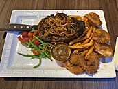 Večeři jsme vyvedli tentokrát znamenitě i draho – dali jsme si zkrátka steak. Celé to bylo v úvodu „okořeněno“ tím, že jsem musel zkrotit dvě Indky, které seděly za námi. Smály se tak hlasitě, až bezohledně, že jsem je požádal, aby se trochu ztišily, že přítel je nevidomý a já mu musím přečíst celé menu. – Civěly na mne s kamenným obličejem, ani „I really appreciate“ s jejich mimickými svaly nepohnulo... nicméně daly pokoj. Nevím, do jaké míry moje žádost zapříčinila to, že nedojedly kus dortu, ale bylo mi to jedno. Než nám přinesla obsluha jídlo, byly už pryč.