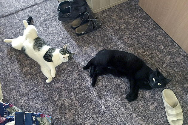 Já v práci. V chládku klimatizace. A nejvíc si to asi užívají naši kocouři. Ti pochopitelně také ne slunce ani Slunce nebo to vedro, nýbrž rovněž chládek, přirozeně proudící chodbou.