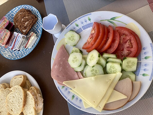 Přiznám se vám, že snídaně se nám na první pohled líbila. I když jsme chápali, že v rámci polopenze nemůžeme chtít švédský stůl a jednotlivé talíře byly hostům přidělovány. Pokud však někdo zoufale umíral hlady, nebyl problém si požádat o přídavek. Jak říkám: první den se nám snídaně líbila.
