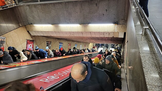 Začalo to tím, že na konečné metra jsem si skoro nesedl. V neděli takto přeplněný vlak se vidí snad pouze po nějakém sportovním utkání. Později jsem se dozvěděl, že musela být uzavřena stanice Staroměstská. Eskalátory prostě nestíhaly vyvážet lidi na povrch.