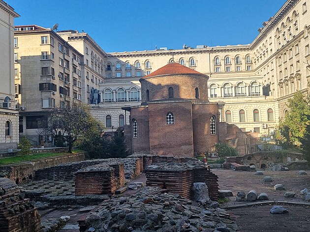 O kousek dál, přímo uvnitř moderního areálu, který byl dříve sídlem komunistické strany Bulharska, je nejstarší budova v Sofii – kostel svatého Jiřího, rotunda ze 4. století, původně postavená jako římské lázně. Tato pozoruhodně zachovalá stavba ukrývá vrstvy historie, od svých římských počátků přes byzantské a osmanské období, kdy sloužila dokonce i jako mešita. Dnes je to bulharský pravoslavný kostel proslulý úchvatnými freskami z 10.–14. století, včetně 22 mohutných postav proroků.