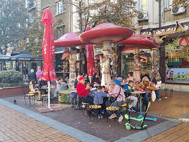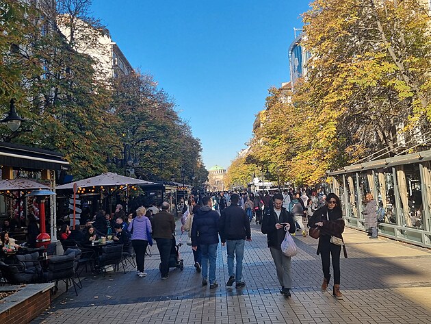 Dostaneme se k Bulváru Vitoša. Což je obrovská, ale hlavně dlouhá, pěší zóna plná kavárniček, cukráren, restaurací, barů a všech možných podobných příjemných podniků.