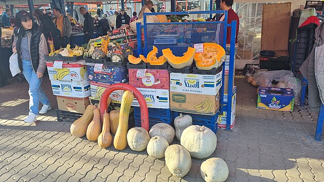 Ale pastvou pro oči i chutě je trh rozkládající se hned vedle. Podívejte se například na tu velikost dýní. Vytáhnete z kapsy minci jedno Euro a můžete si ochutnat třeba nakládaný česnek, nebo si dát panáka místní rakije.