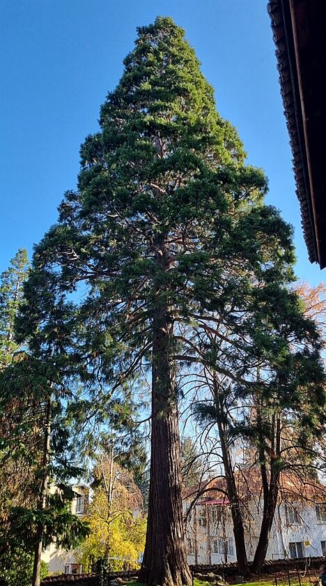 Ale mě spíše zaujaly v zahradě sekvoje. Tyto stromy znám zatím pouze ze severní Ameriky, netušil jsem, že je najdu i v Evropě. Mohou být staré až několik tisíc let a dorůstají výšky až 85 metrů. Kmen může být tak tlustý, že skrz něj lze prodlabat i tunel pro auto.