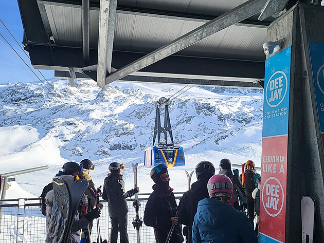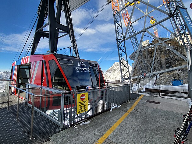 Pomalu se blíží večer a je čas návratu do Itálie. Zpět na lyžích vede jen jedna cesta. A to přes Malý Matterhorn. Původní kabinovou lanovku doplnila v roce 2018 gondolová lanovka. 100 dní se stavělo po tři roky každé léto. Jedná se o nejvýše položenou lanovku se třemi nosnými lany na světě a vede souběžně se stávající lanovkou z Trockenen Steg na Klein Matterhorn. Přepravní kapacita se tak zvýšila o 2000 osob za hodinu a nyní je možný celoroční provoz lanovky. Lanovka se skládá z 25 kabin po 28 místech. Doba jízdy je přibližně 9 minut při rychlosti 7,5 m/s. Při délce přes 3,5 km překonává skoro 900 výškových metrů. Zdroj.