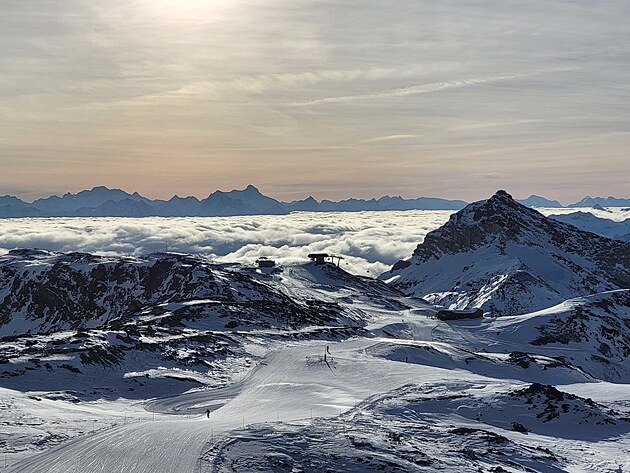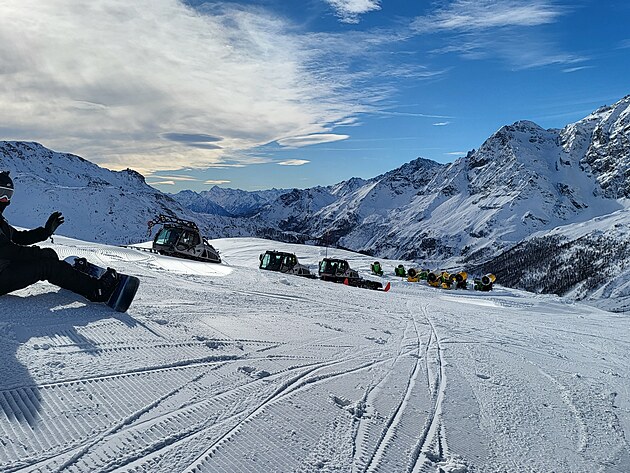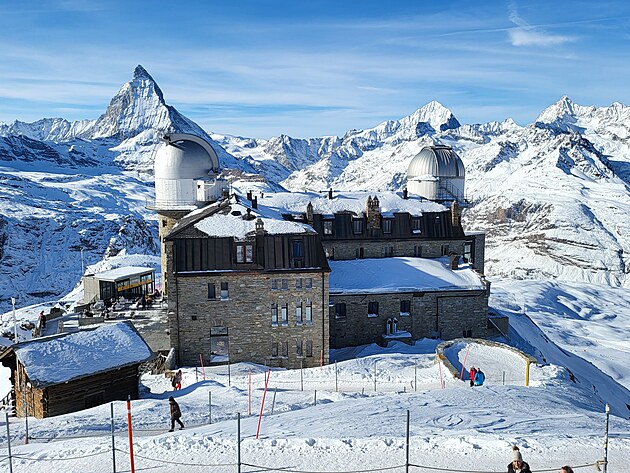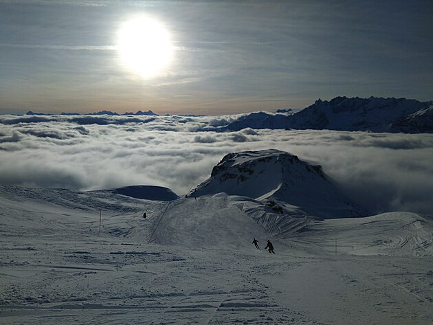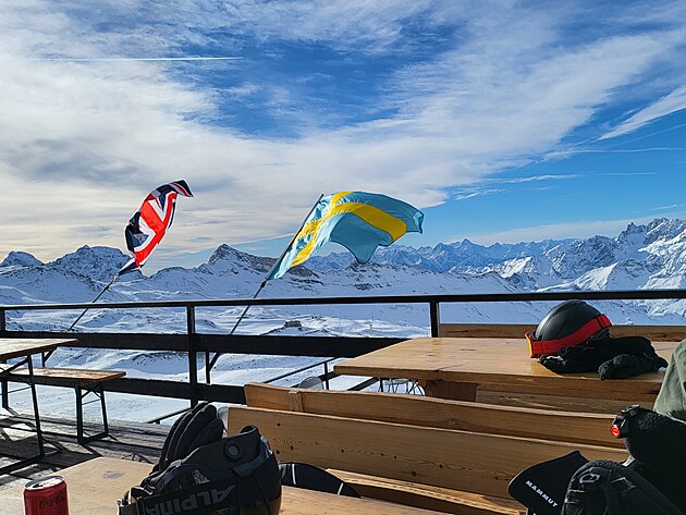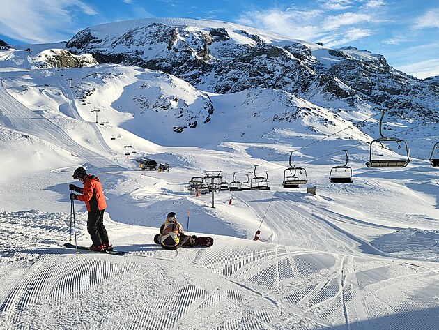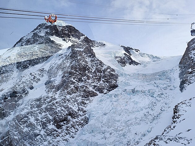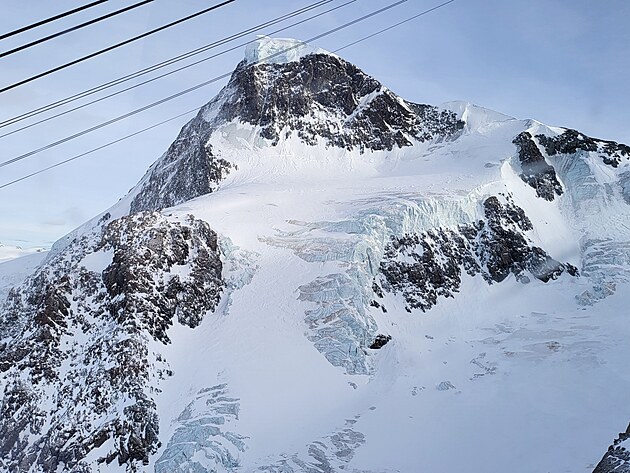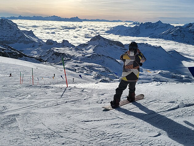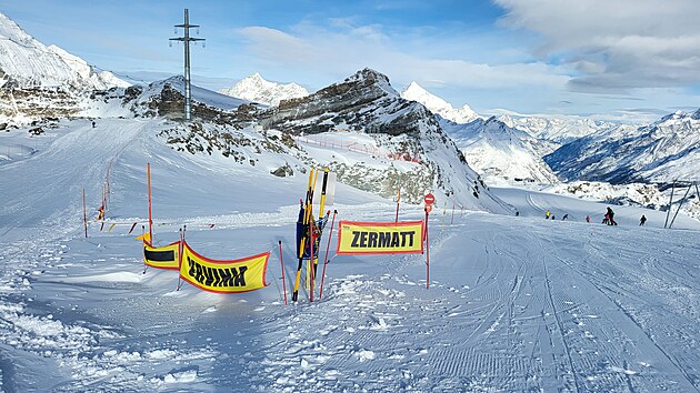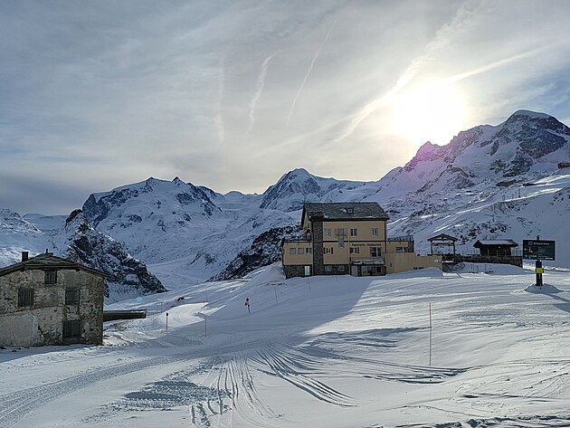 Nahoře vystoupíte ve výšce 3820 m.n.m. Nalézáte se na nejvyšším bodě v Alpách, na který se lze dostat lanovkou. O pouhých 400 metrů níže než je vrchol Matterhornu. To je stejný výškový rozdíl, jaký má sjezdovka odtud směrem do Itálie k první italské lanovce. A cítíte, že se vám opravdu hůře dýchá. To se projevuje při sjezdu, kdy těžko vydýchávám náročné oblouky, až sebou seknu do sněhu. Docela tvrdě :-). Přispěchající mladík mi podává spadlou lyži a celkem 5x se mě zeptá: „Are you OK, sir?“