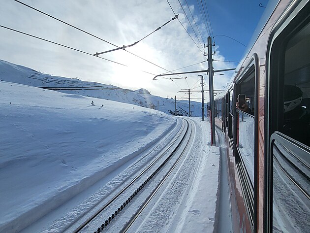 K prodloužení o 310 metrů až k vrcholu došlo v roce 1909. Až do roku 1928 jezdila Gornergratbahn pouze v létě, ale nyní poprvé jezdily vlaky i v zimě, a to v závislosti na sněhových podmínkách do stanic Riffelalp nebo Riffelboden. Zvláště lavinami ohrožený úsek na Riffelbordu bránil v cestě až na vrchol. V roce 1939 zde byla zahájena stavba 770 metrů dlouhé lavinové štoly, která se však kvůli druhé světové válce protáhla až do roku 1941. Od roku 1942 je za dobrých povětrnostních podmínek možný zimní provoz až na konečnou stanici Gornergrat. Zdroj. Abyste si uvědomili, jakým klenotem jedete, tak snad jedna poznámka. Podíval jsem se na cenu jednotlivé, jednosměrné jízdenky – 48 CHF. A to my máme neomezeně v ceně skipassu.