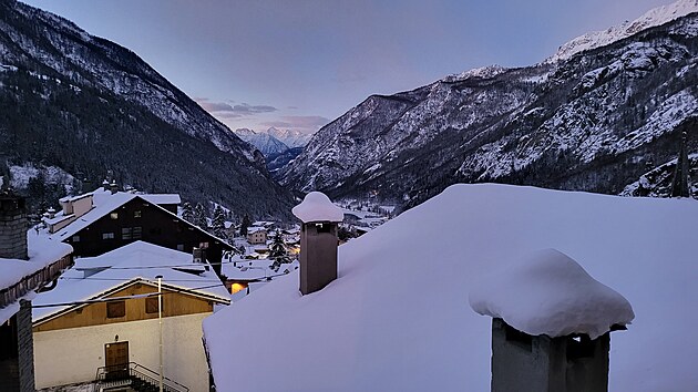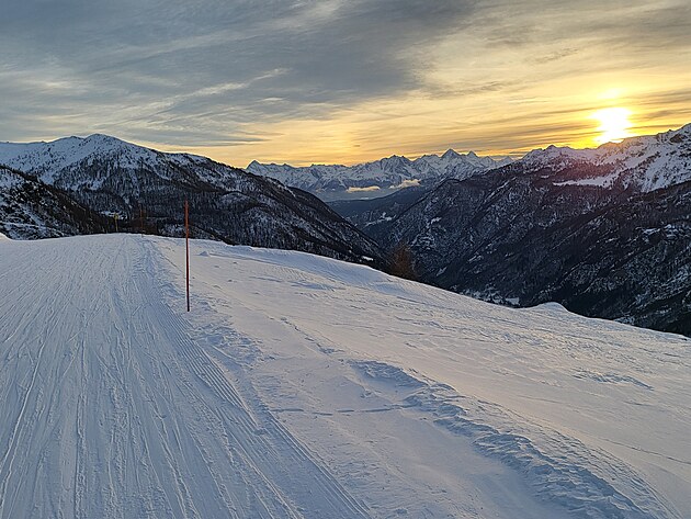 Ranní pohled z okna dává tušit, že počasí bude na naší straně a proto vzhůru na první lyžařské italsko-švýcarské dobrodružství.