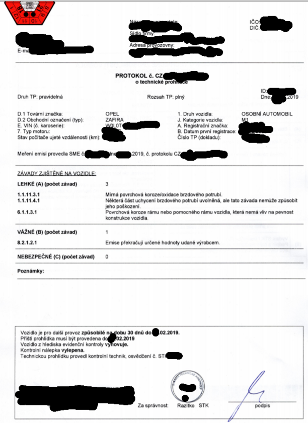 Přestože je v důvodech nevyhovění napsáno, že jsou "překročeny emisní limity výrobce", pak proč jsou zde samé nuly, a proč to systém kontroly on-line nehlásí?