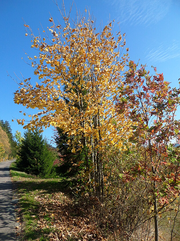 Postupně jsem scházela od Převáže k Čenkovicím, kde jsem se hodně zdržela focením nádherných javorů v podzimních tónech.