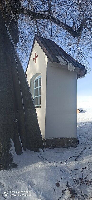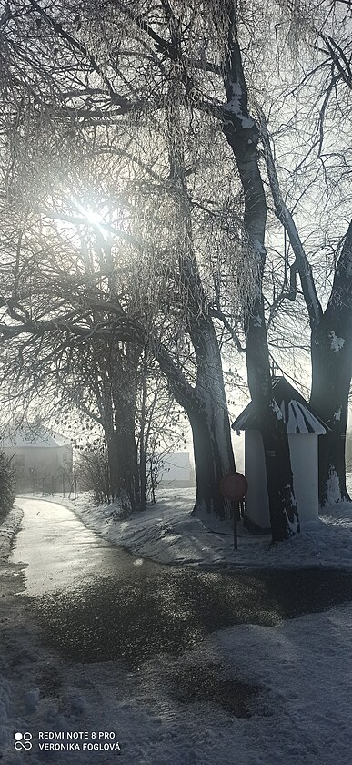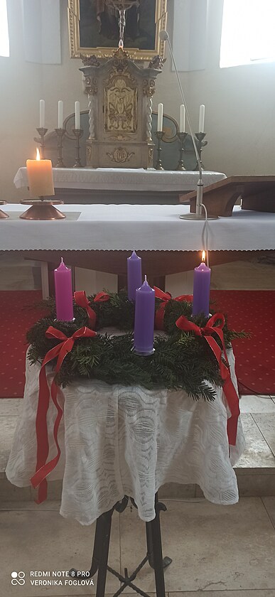Začnu snímkem adventního věnce s první zapálenou svíčkou z našeho kostela sv. Prokopa, zbylé snímky jsem fotila u nás na horním konci Sobkovic.