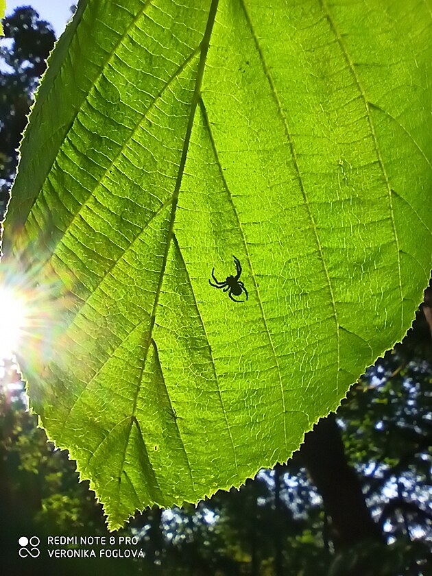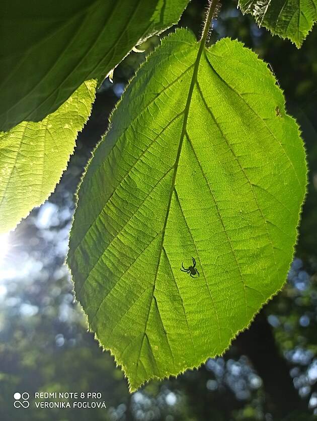 Tou druhou byla líska s hedvábnými lístky, nasvícená od východu sluníčkem. První lístek byl nádherně vykrojený do špičky, na druhém jsem si po chvilce všimla malinkatého broučka či pavoučka.