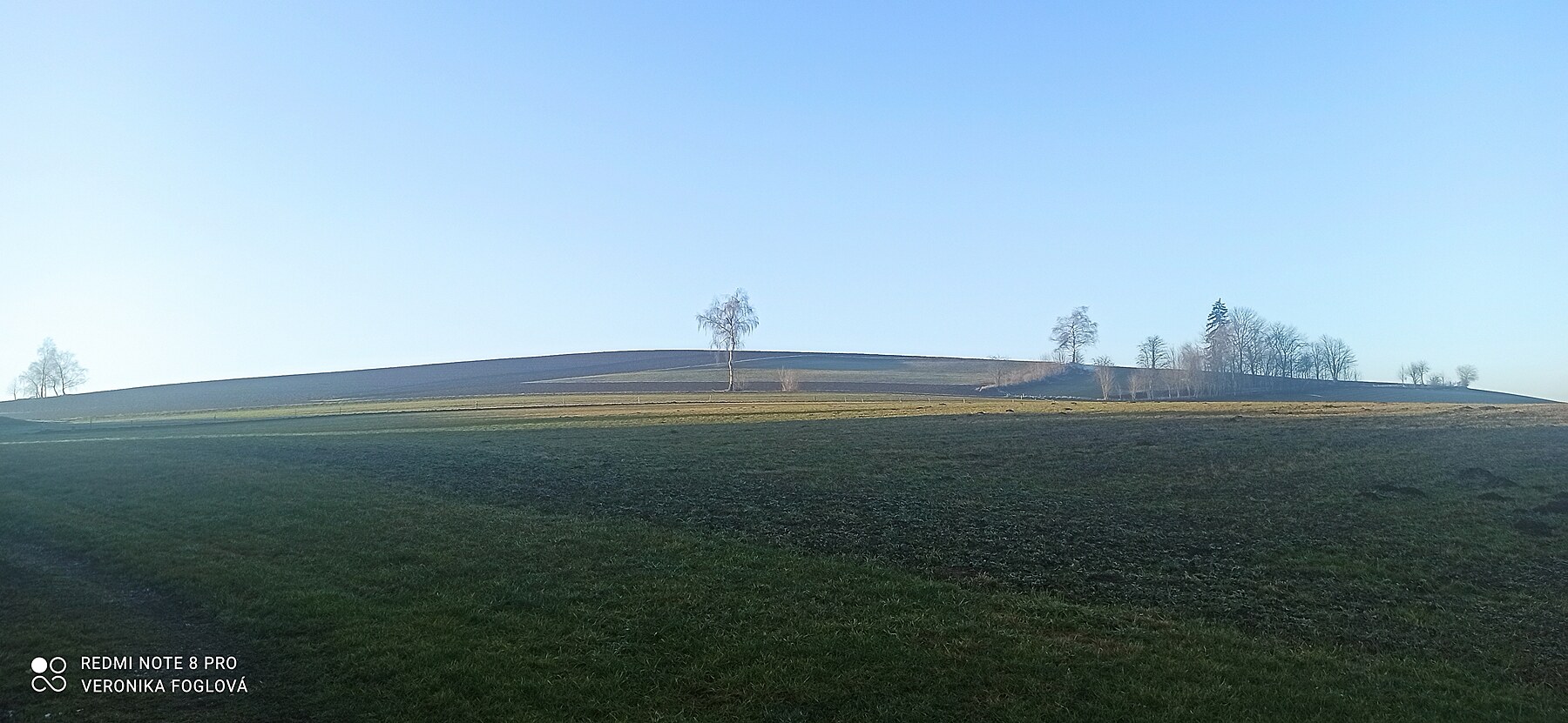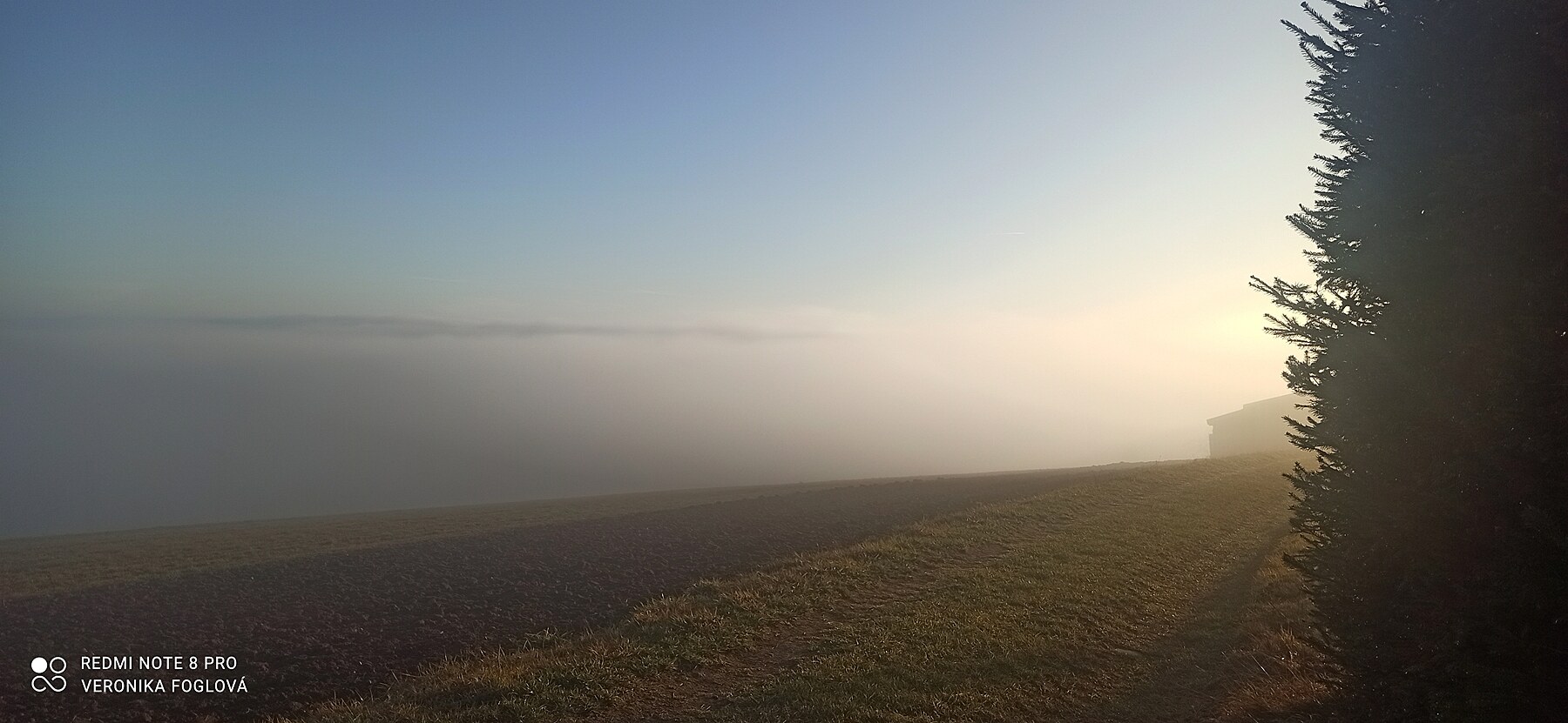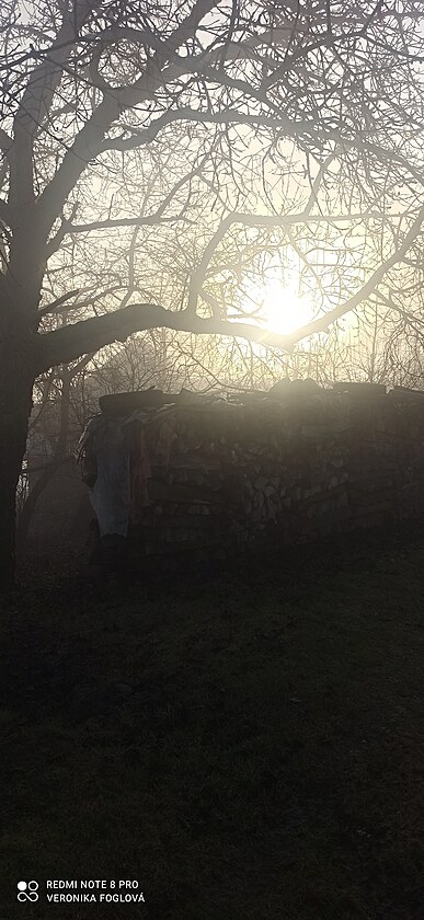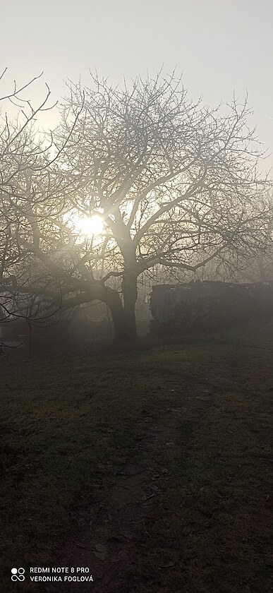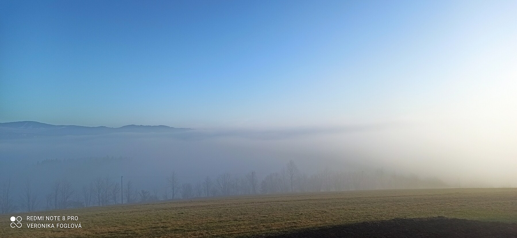 Bylo to kouzelné, vidět po těch dnech plných mlhy, mlhy a zase jenom mlhy modrou oblohu, okolní vrcholy, lesy, louky a pole. Fotila jsem kousek za naším domem...
