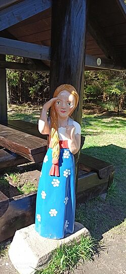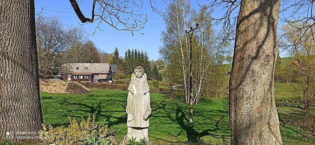 Odtud jsme se do Čertova Dolu vydaly pěšky. Pátraly jsme po stromu, na němž měly být umístěny umělé květiny jako připomínka, že by tam údajně měl být masový hrob sudetských Němců, kteří tu byli popraveni krátce po válce. Nic jsme však přes veškerou snahu nenašly. Rezonovaly ve mně vzpomínky na srpen 2016, kdy jsem tu byla poprvé... Po návratu k autu jsme vyjely doprava, přes Kamenec směrem na Luisino Údolí, o němž jsem tu psala v posledních dvou článcích. Mnoho se tam od té doby v září 2013 změnilo. Od hájovny jsem viděla i novou rozhlednu na Velké Deštné, kterou uvidíte uprostřed posledního snímku z této lokality.