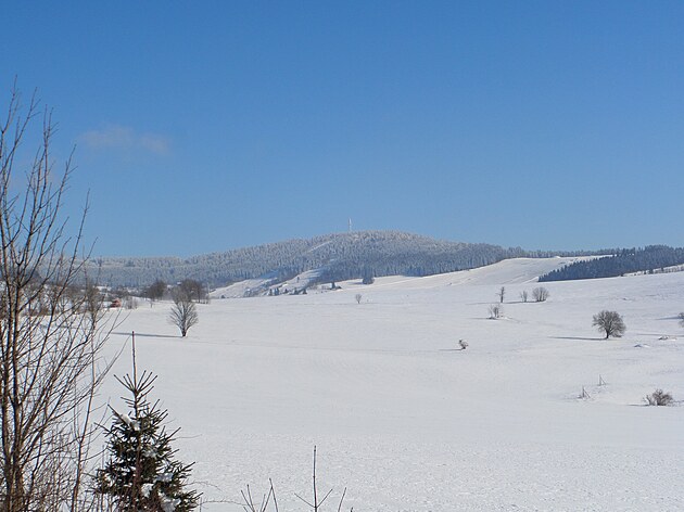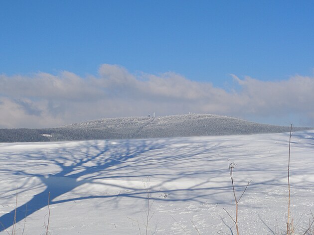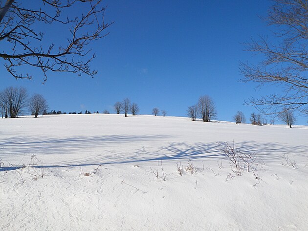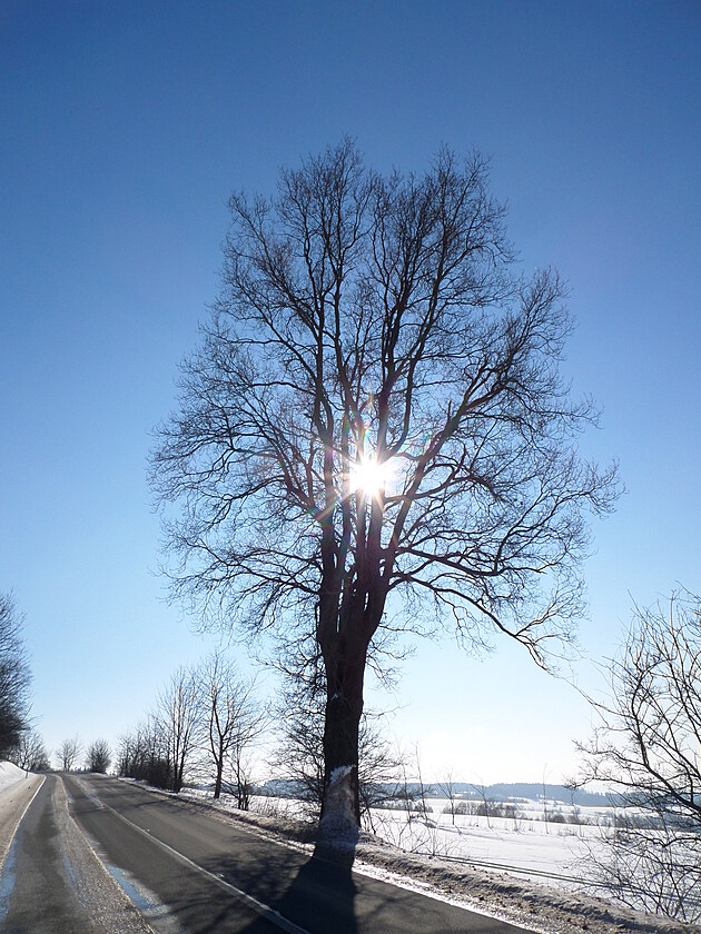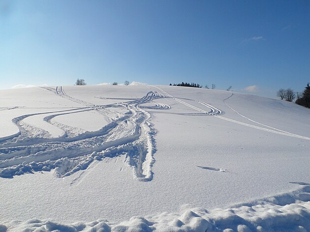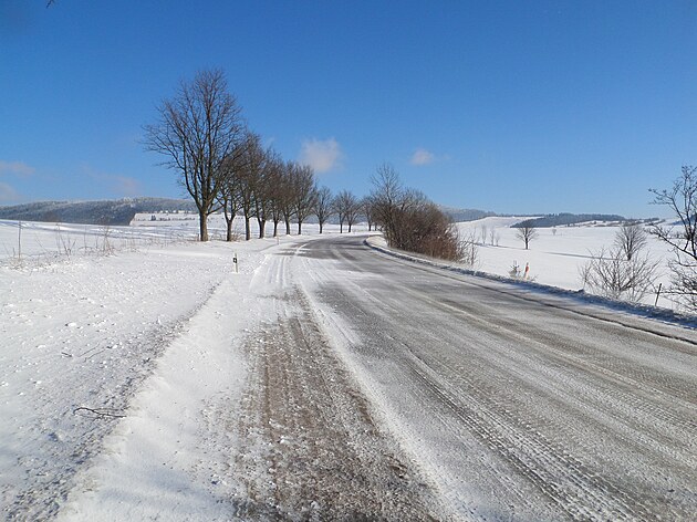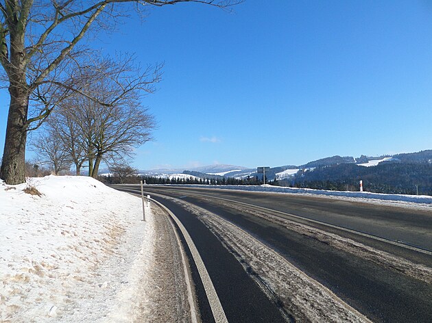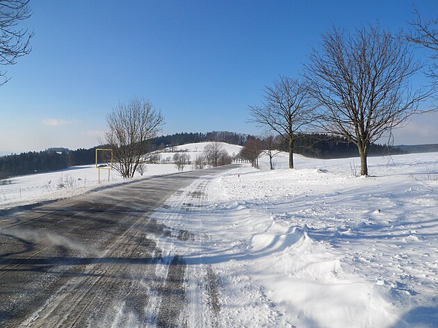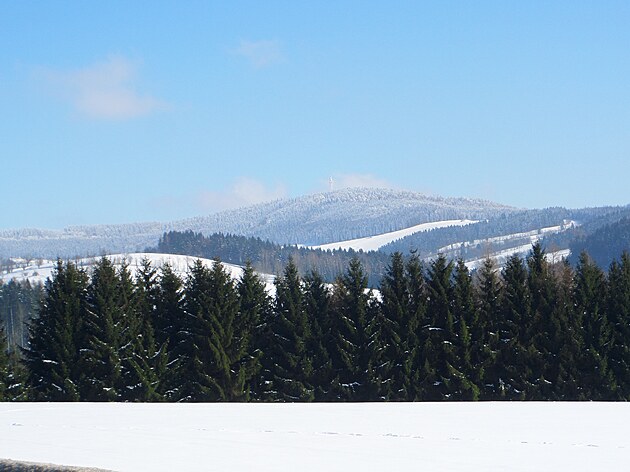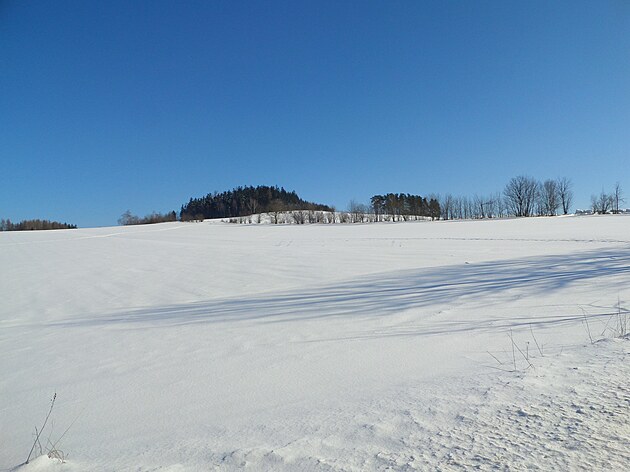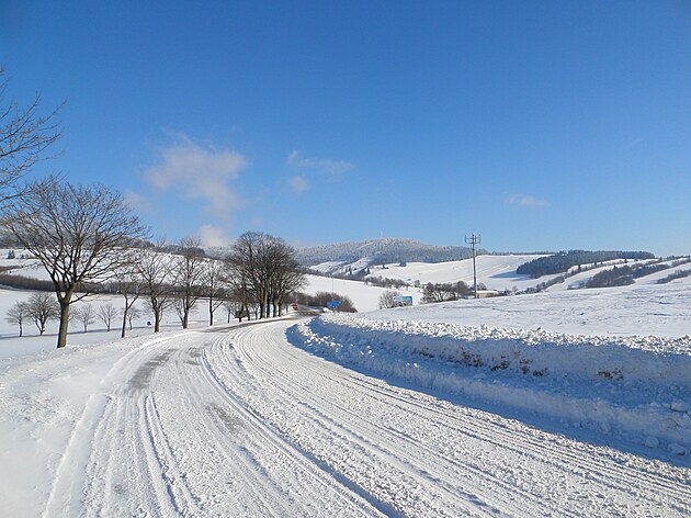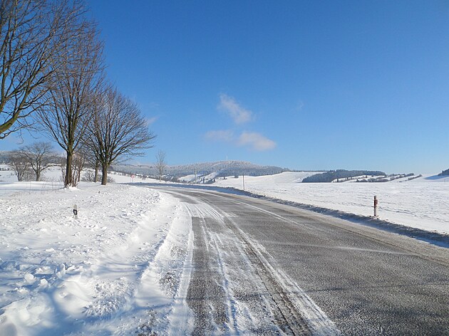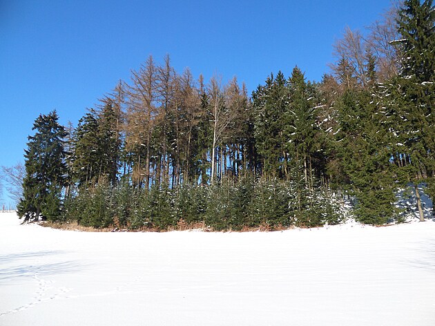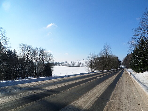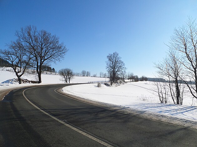 Za Bulíkem už se otevíraly zimní výhledy k Suchému vrchu (995 m) a Bukové hoře (958 m). V těchto místech je ale krajina otevřená na všechny strany a právě od Suchého vrchu foukal velmi mrazivý vítr. Postupovala jsem dál až na křižovatku Čenkovice – Orličky, odkud jsem se po osmi a půl kilometrech pěšky autobusem přesunula zpátky do Jablonného.
