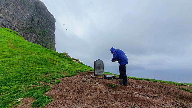 Musíte překonat několik koryt potoků, budete trošku bojovat s deštěm, mokrou trávou a bahnem. Nic zásadního. My, a v podstatě všich ostatní turisti, které jsme znali už z trajektu, míříme stejným směrem. Nemůžete to nenajít. Prostě jdete z vesnice na severozápad, po pravici pořád vidíte moře, po levici máte kopec. Je celkem jedno, jak daleko od moře nebo kopce jste, po pár desítkách minut před sebou uvidíte maják. A hrob Jamese Bonda je, z vašeho pohledu příchozího, vlevo od něj. Vede k němu od majáku vyšlapaná pěšina po hraně útesu.