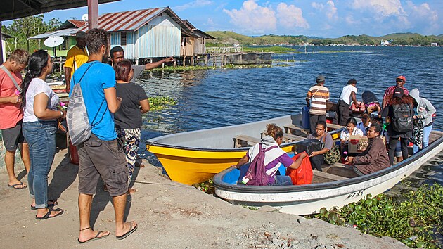 Nastoupili jsme do jedné z loděk, které pendlovaly mezi břehy a svážely návštěvníky. Ostrůvky jsou plné domků na kůlech těsně nad hladinou. Na většině z nich stojí také křesťanské kostely. V jednom místě se z jezera tyčí impozantní socha Krista.