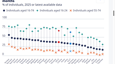 Mladí na špici AI pelotonu, senioři hodně v závěsu. Jak si Česko vede v AI? OECD (2025).
