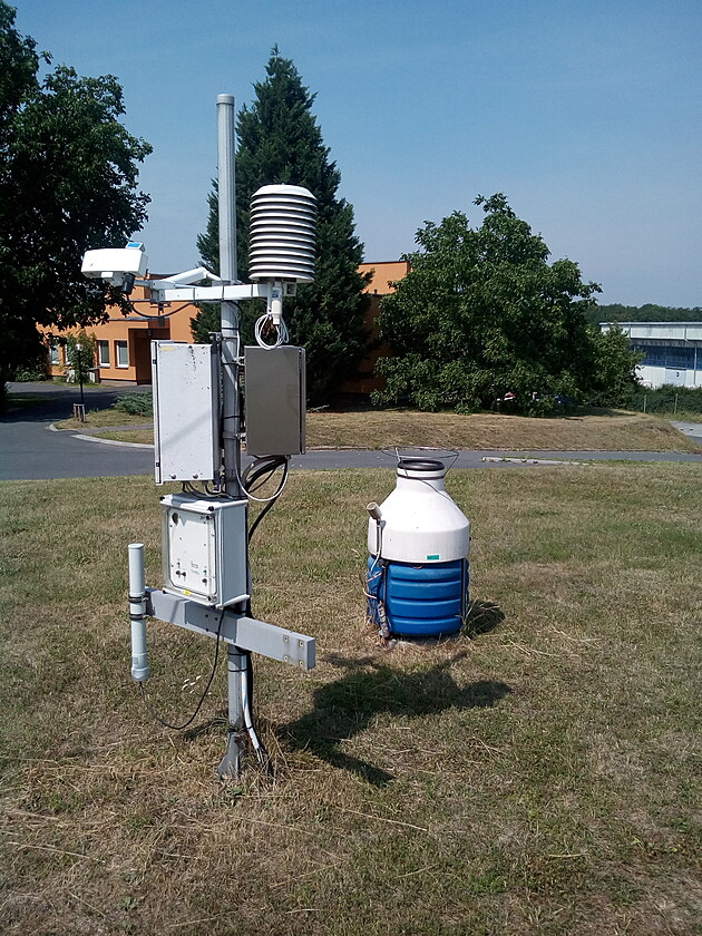 Přízemní a půdní teploměry měří 5 cm nad povrchem a 5, 10, 50 a 100 cm pod povrchem. Nelze si nevšimnout uschlého trávníku. Minulý rok o prázdninách naše území bylo pod vlivem častých tlakových výší s vysokými teplotami a suchem.