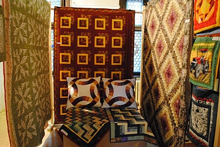 Patchworkové výrobky na fotografiích jsou součástí šumperské výstavy.