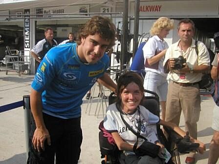 Najednou vyšel ven v tu chvíli vedoucí závodník průběžného hodnocení Fernando Alonso (který se – ač nebyl mým favoritem - později opravdu stal mistrem světa). Mohla jsem se s ním dokonce vyfotit. Trvalo to pár vteřin, ale byl to neuvěřitelný zážitek. Byl moc milý a dokonce mi děkoval, dříve než jsem to stihla udělat já.