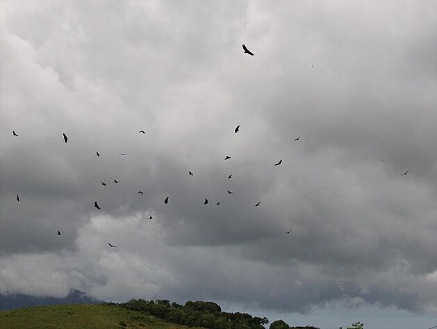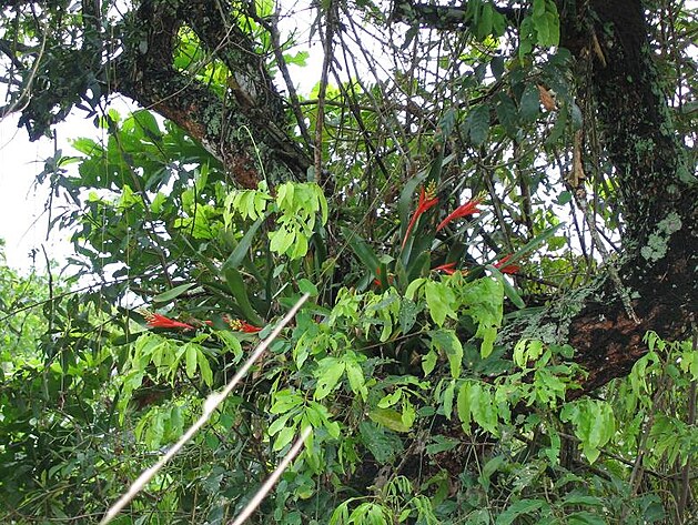 Odpoledne déšť pozvolna ustával. Byly chvíle, kdy téměř vůbec nepršelo a nebo jen droboulince a naprosto nepozorovatelně mrholilo. Na jedné zastávce jsem objevil starý strom, na kterém rostly trsy kvetoucích bromélií. Podmínkou bylo to, že to musí být starý strom. Na mladých stromech nikdy žádné bromélie nerostly. A starých stromů bylo v oblasti málo. Zřejmě jen co dorostly do patřičné velikosti, byly skácené. Tady však rostl strom už několik desítek let, měl tlustý kmen, silné větve a v paždích se uchytily epifytické rostliny. Červenožluté květy byly úžasné. Na nebi kroužili velcí ptáci. Neznám přesně tento druh, ale bylo to něco mezi supem a kondorem ve velikosti menšího orla. Byli to mrchožrouti. Naprosto dokonale dokázali během pár hodin kompletně zlikvidovat jakoukoliv mršinu.