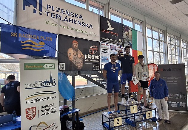 Bronzovou medaili v kategorii mužů získal domácí závodník Antonín Kovář (2008), který v trojboji získal celkem 1.487 bodů. Na druhém místě se umístil plavec PK Slavie VŠ Plzeň Jiří Pivoňka (1990) s celkovým počtem 1.626 bodů (poznámka: jeho plavecké začátky jsou spojené s naším klubem SK Radbuza). Jeho 50 metrová trať s časem 00:29,76 patřila mezi nejrychlejší a zároveň tímto časem překonal český rekord v kategorii masters ve věku 35 – 39 let. Optimální tři časy v trojboji předvedl Tomáš Filip (2005), také ze Slávie Plzeň a získal za 1.674 bodů první místo. Nejrychleji plaval stometrovou distanci (1:05,47).