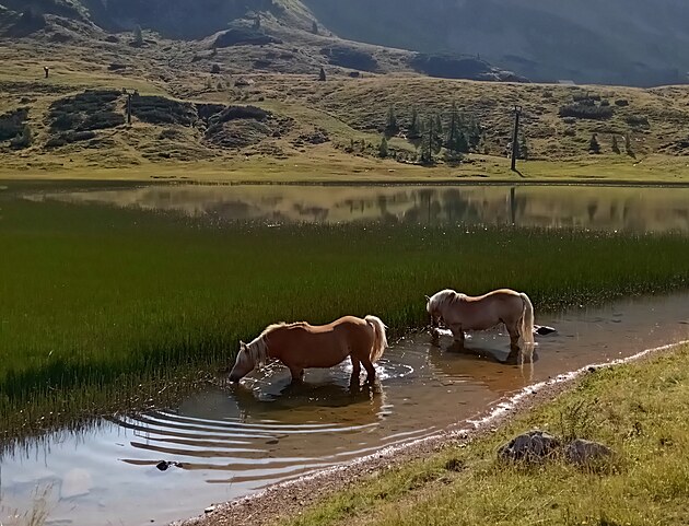 U nás v nadmořské výšce pět set metrů možná. Ale tady? Bouřka se honila po horách kolem dokola a já se snažila moc nemyslet na to, jestli už kluci stačili sestoupit z náhorní plošiny, nebo jestli to práská kolem nich. Skoro mi to šlo. Kroupy totiž padaly půl hodiny v kuse a prodraly se skrz větve, skrz Kulíškův kožich a nakonec i skrz naše pláštěnky. Takže moje pozornost padla na to, jak se co nejlíp tyčit nad pětiletým drobkem, aby ho kroupy moc nebičovaly, jak se vyhnout nově vzniklému potoku, který se na nás začal valit ze svahů, a jak vyřešit dilema mezi tím jít, aby se syn zahřál, a mezi tím, zůstat pod stromem, kde bylo aspoň o trochu líp.